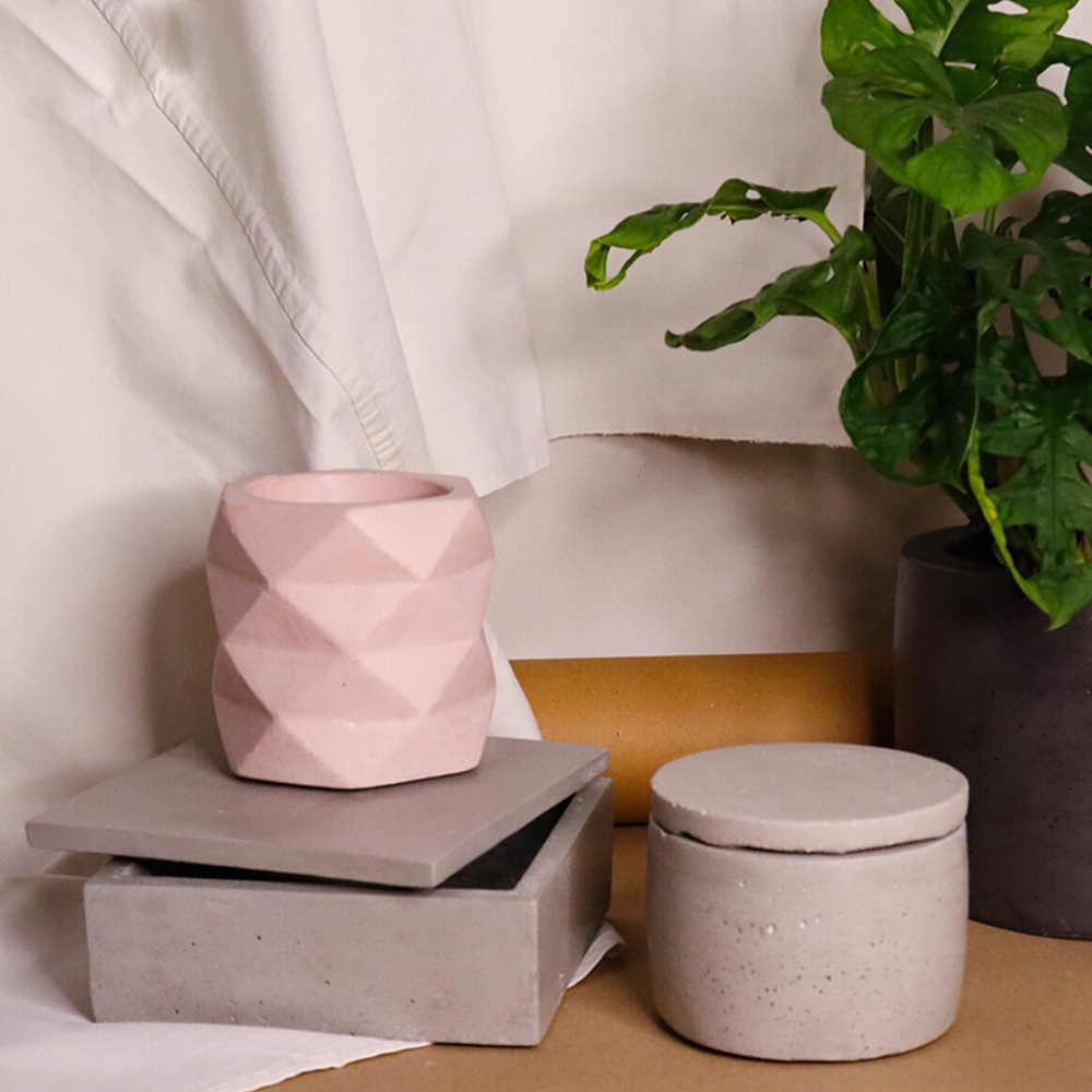 A concrete pot in cylindrical origami design available in various colors. Use it in various ways in your professional or personal space. Use it for your pencils, toothbrushes, brushes and give your space a different touch!